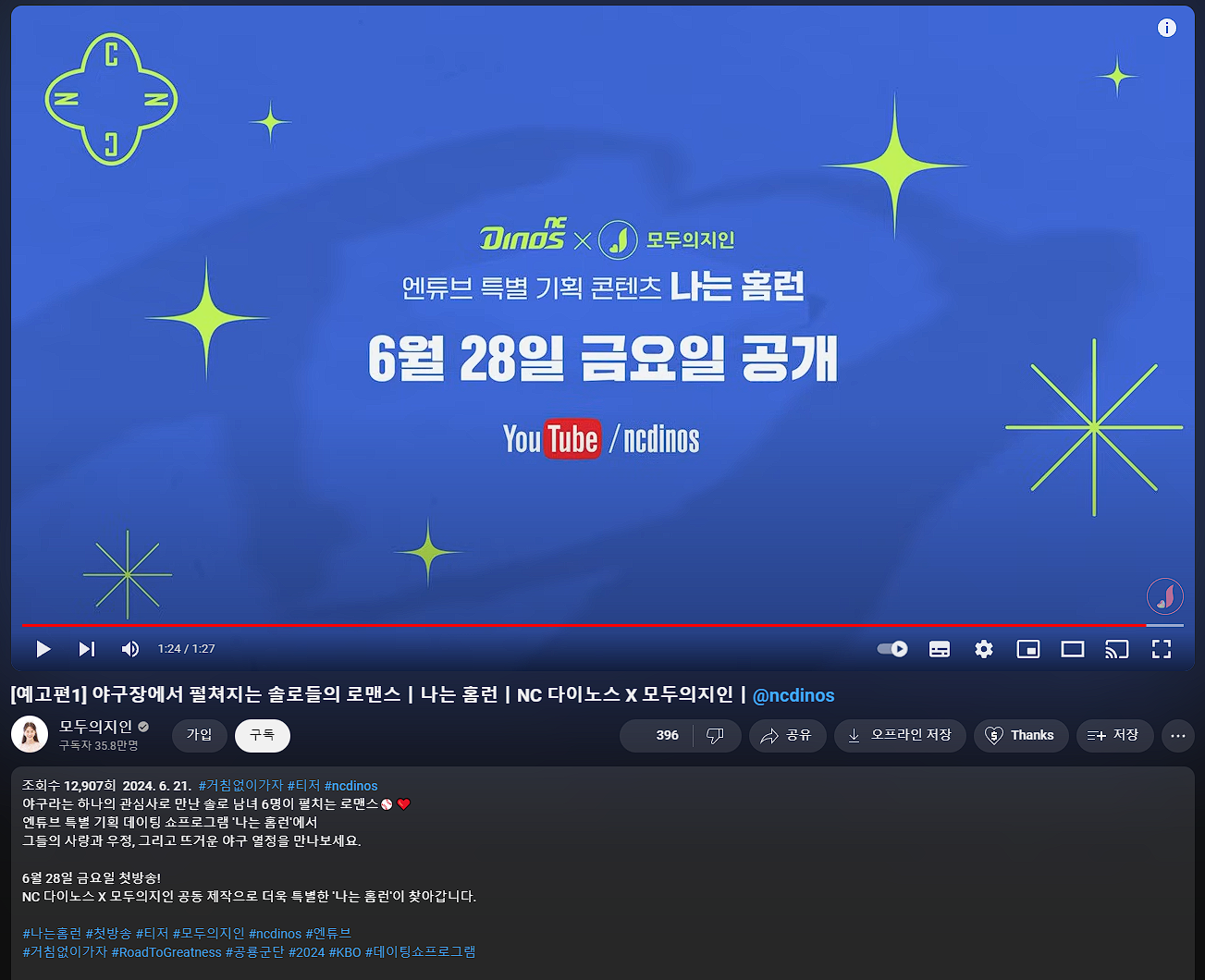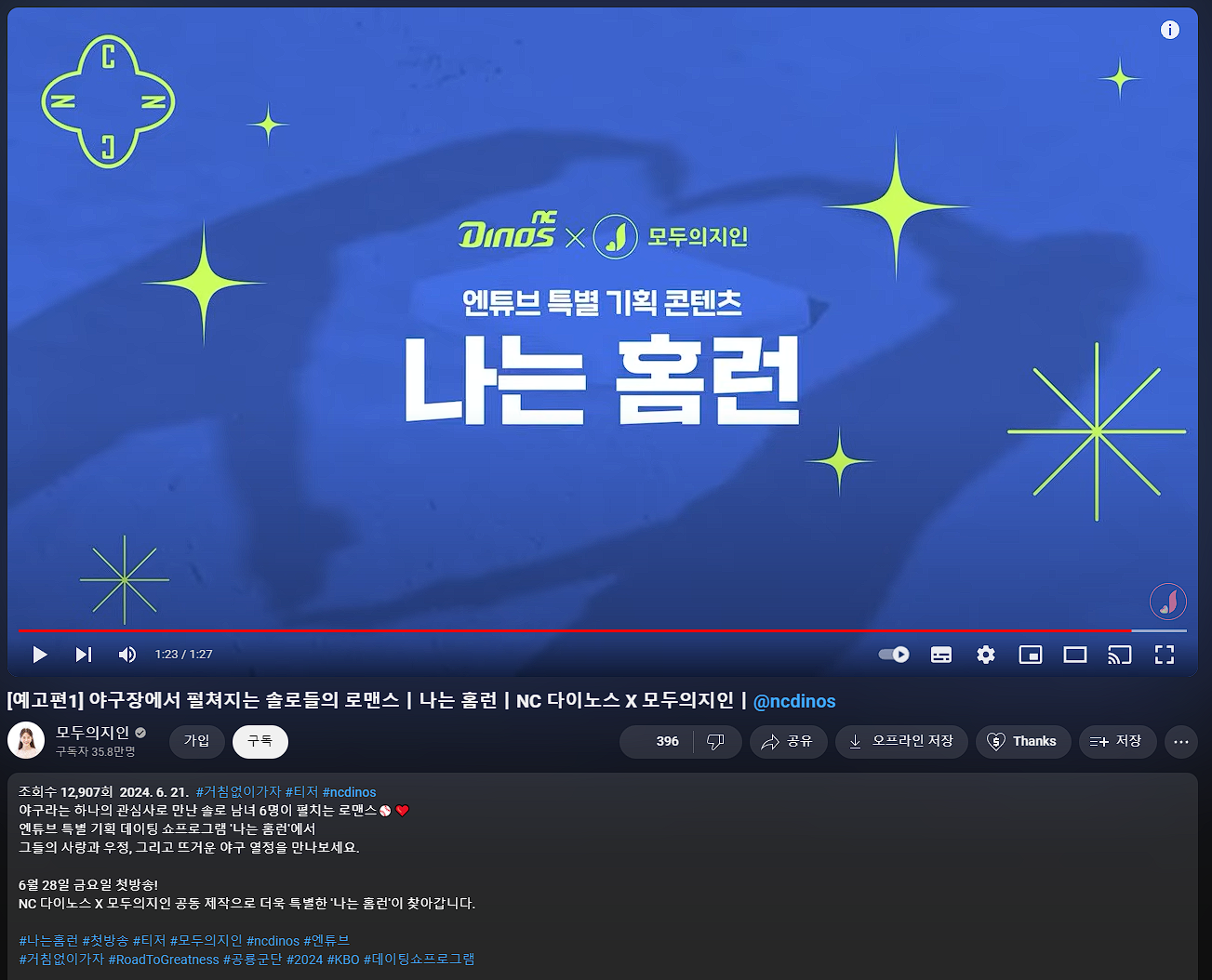 NC 다이노스 x 모두의지인 콜라보 데이팅쇼 프로그램 '나는홈런' 특별 기획에 음악프로듀서로 참여했습니다.